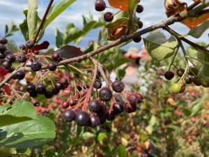 Die Aronia- oder Apfelbeere ist ein genügsamer Strauch, der mit wenig Wasser auskommt, aber zur Blütezeit im Mai und zur Zeit der Fruchtausbildung im Juli schon einmal einen kräftigen Niederschlag braucht. Weil die Niederschlagsmengen in diesen Monaten sehr schwankten, fiel die Etnte in den vergangenen Jahren sehr unterschiedlich aus. Die Familie Maußer bewirtschaftet 40 Hektar und erntete zwischen 70 und 100 Tonnen. In diesem Jahr mögen es nur 30 Tonnen werden, wenn es jetzt nicht bald kräftig regnet.