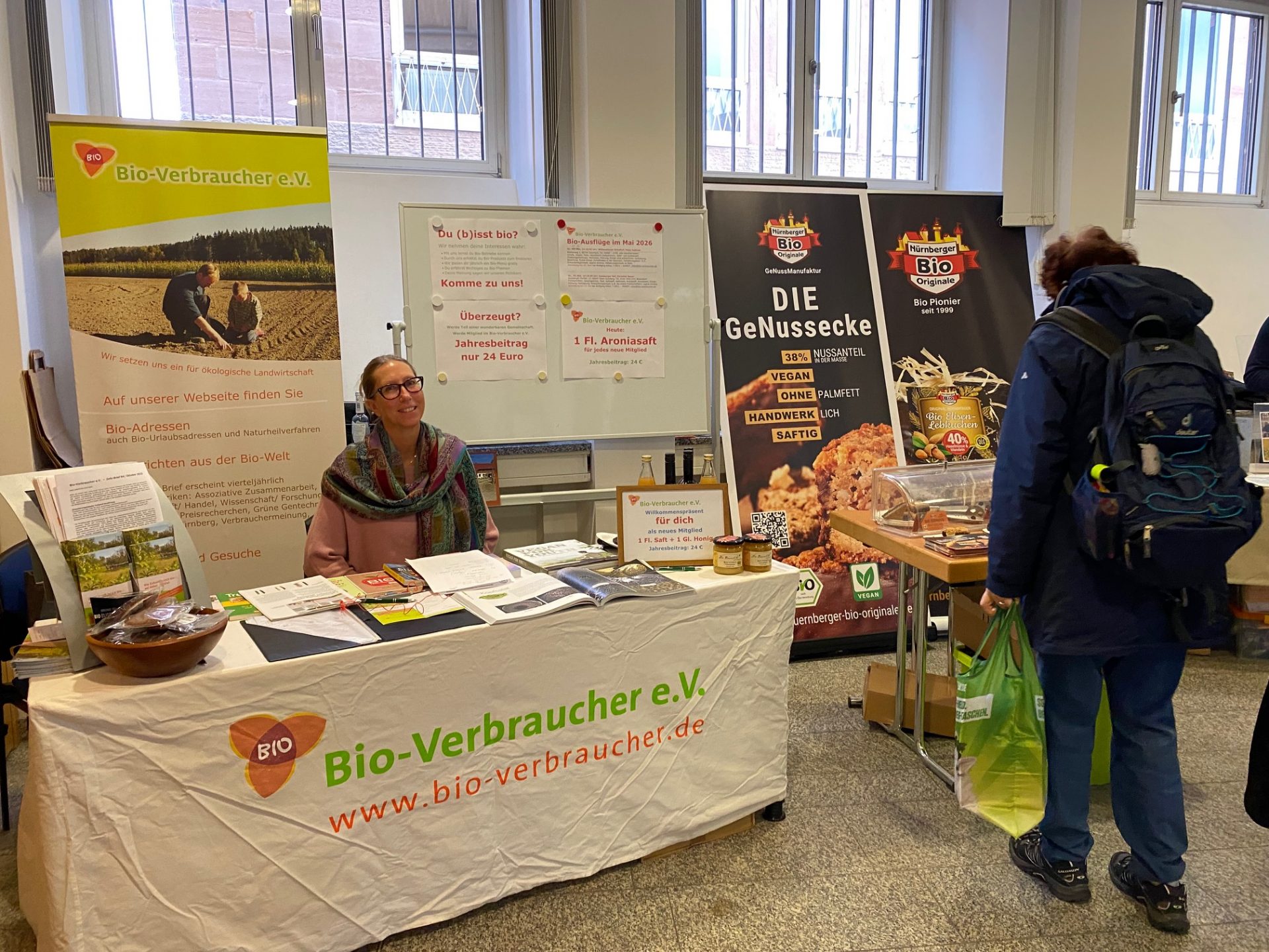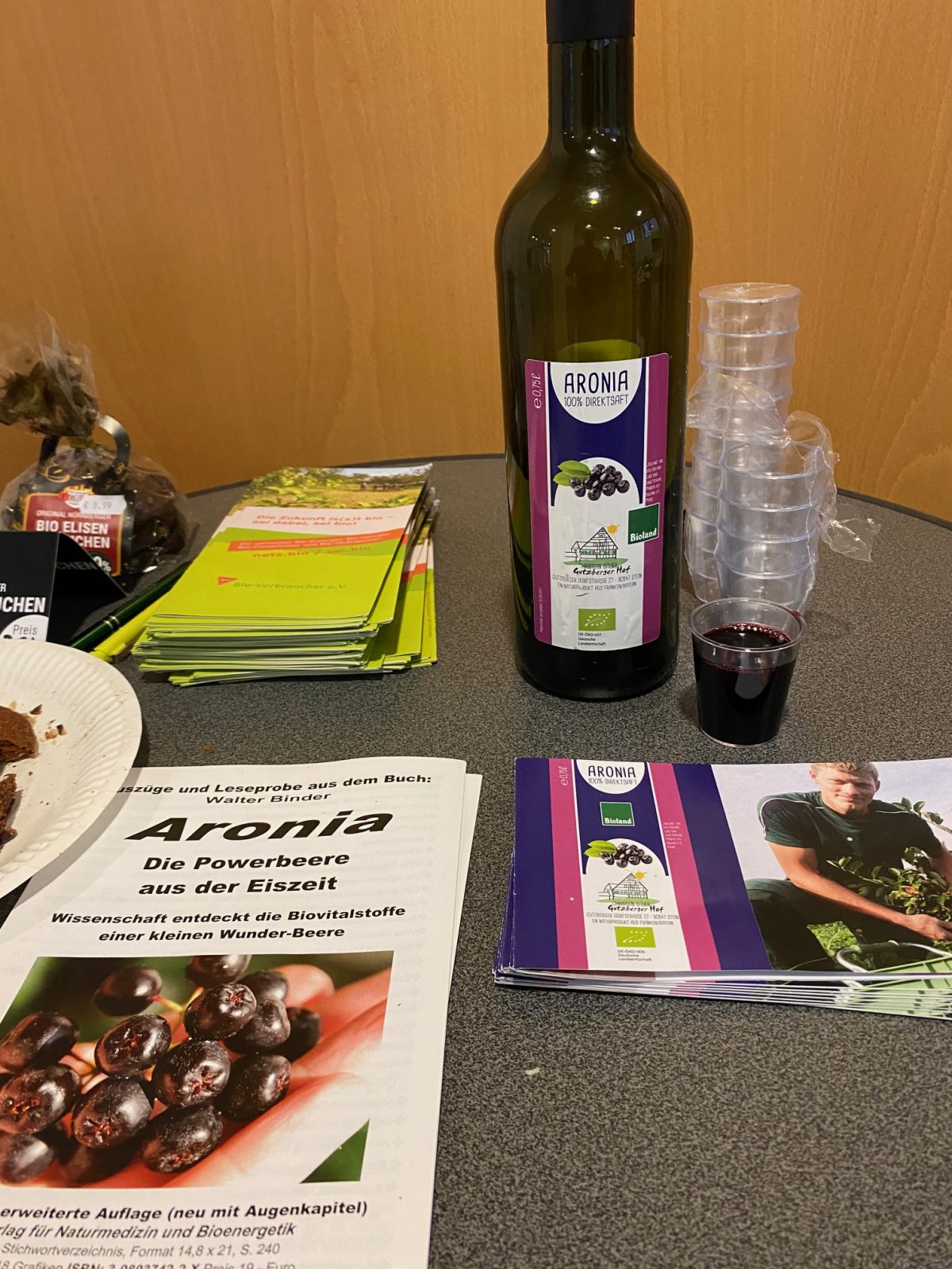 Der Bio-Verbraucher e.V. ist dabei. Wir verkosten Aronia-Saft von Christian Bauer und Lebkuchen von Nürnberger Bio-Originale.