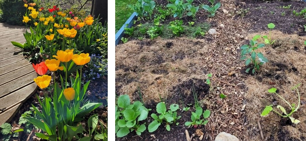 Im Boden war über den Winter keineswegs Stillstand. Regenwürmer, Asseln und Mikroorganismen zersetzen Pflanzenreste, bauen stabile Krümelstrukturen auf und machen Nährstoffe pflanzenverfügbar – sofern die Oberfläche geschützt ist. Offener, blanker Boden dagegen trocknet schneller aus, verschlammt leichter und verliert an Struktur. Als Grundregel gilt: Der Boden sollte möglichst ganzjährig bedeckt sein. Mit Mulch, Pflanzenresten oder lebenden Bodendeckern.